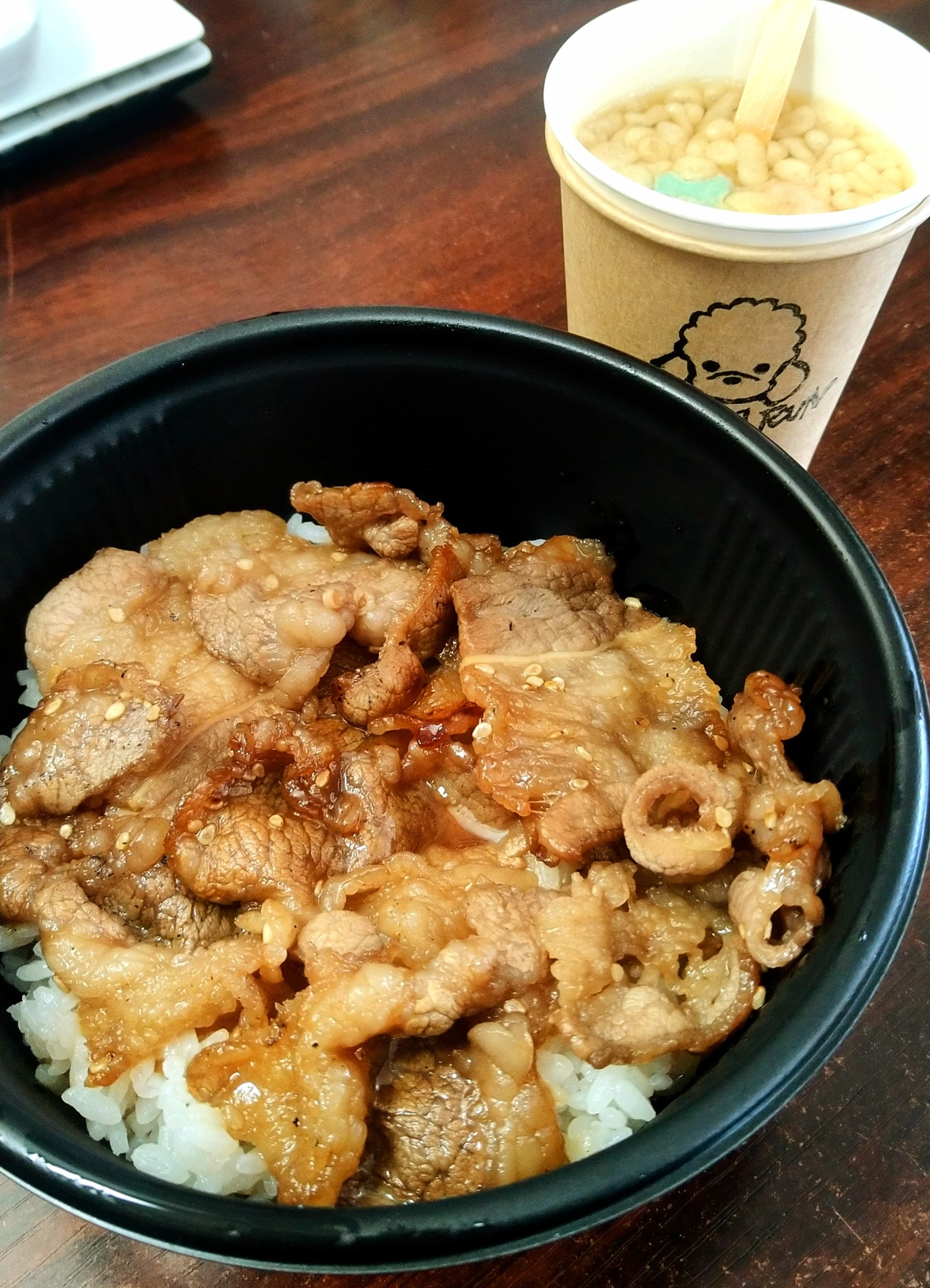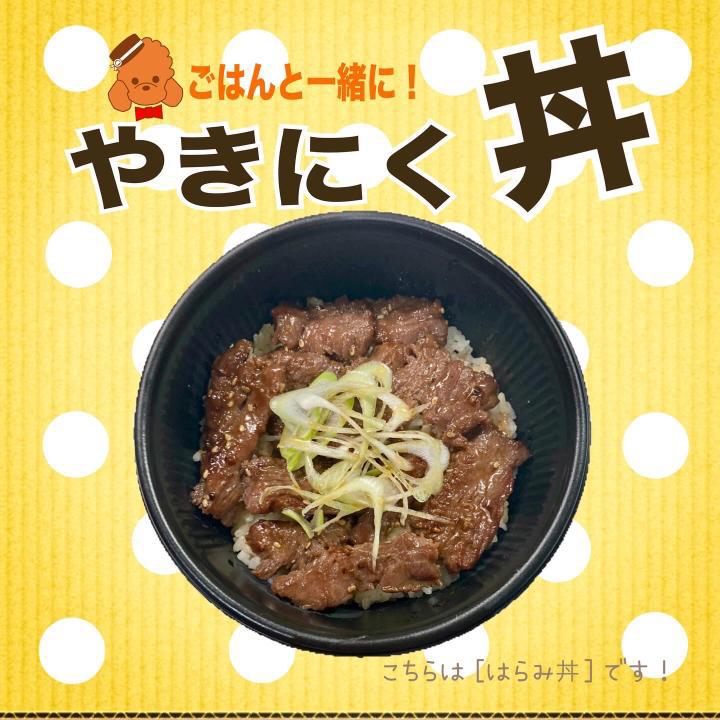 自家製のタレに漬け込んだお肉を心を込めて焼いた、とっても美味しい焼き肉丼と、たぬきつゆの組み合わせは最高です!