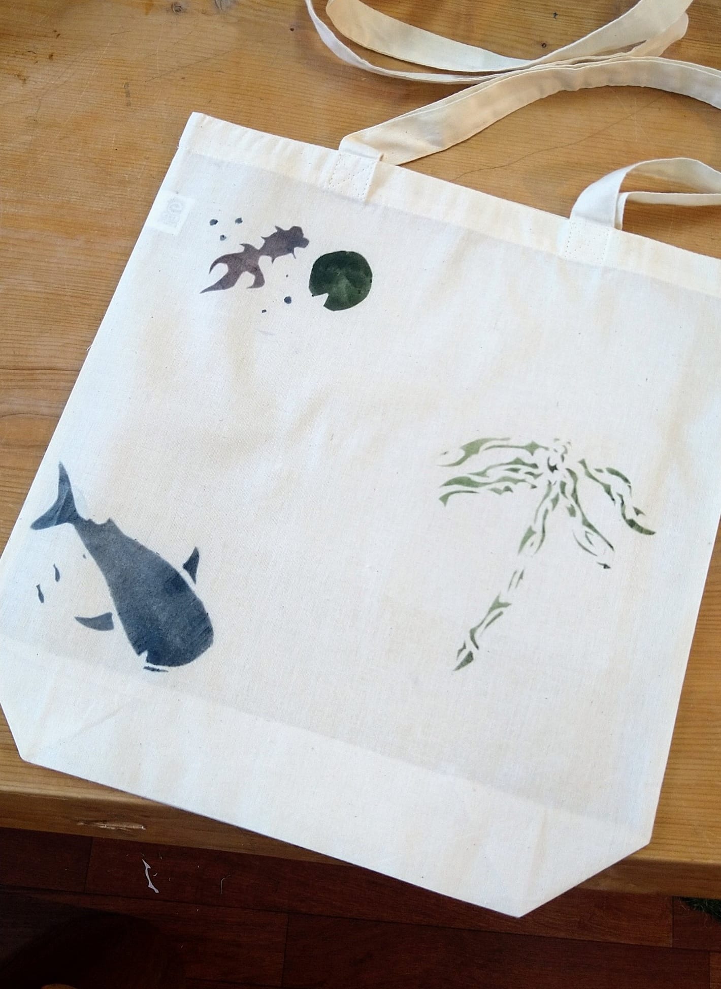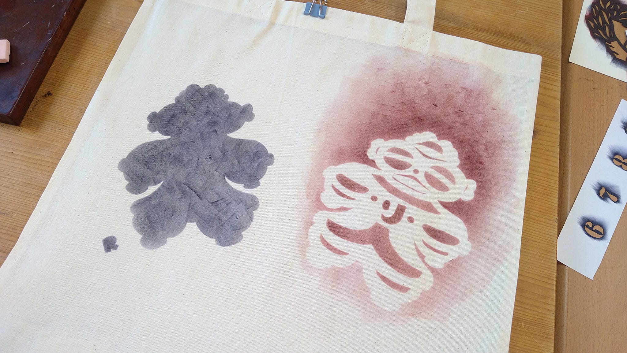 自分でデザインし作った型で、バッグに漆でステンシルしてみる実験です!